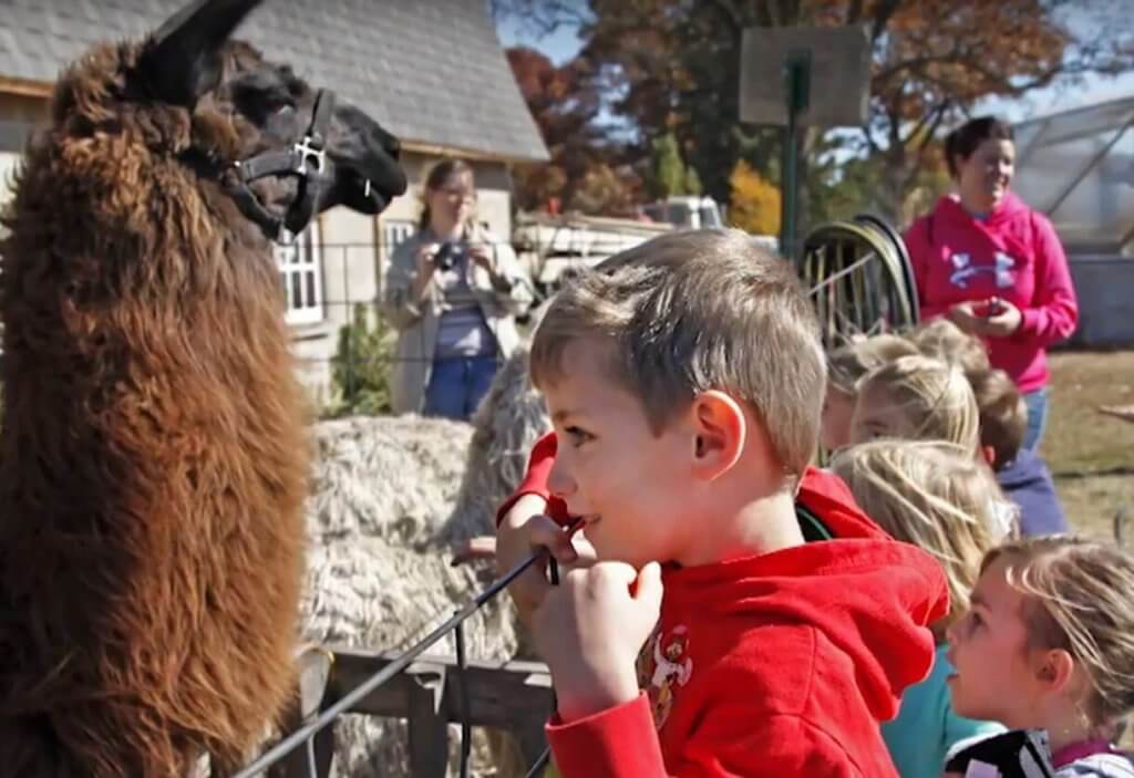 The growing lineup of animals on the farm include: two rabbits, two guinea pigs, a leopard gecko, three tree frogs, three hermit crabs, fish, four horses, two alpacas, and two goats. Staff is currently on the lookout for a donkey!