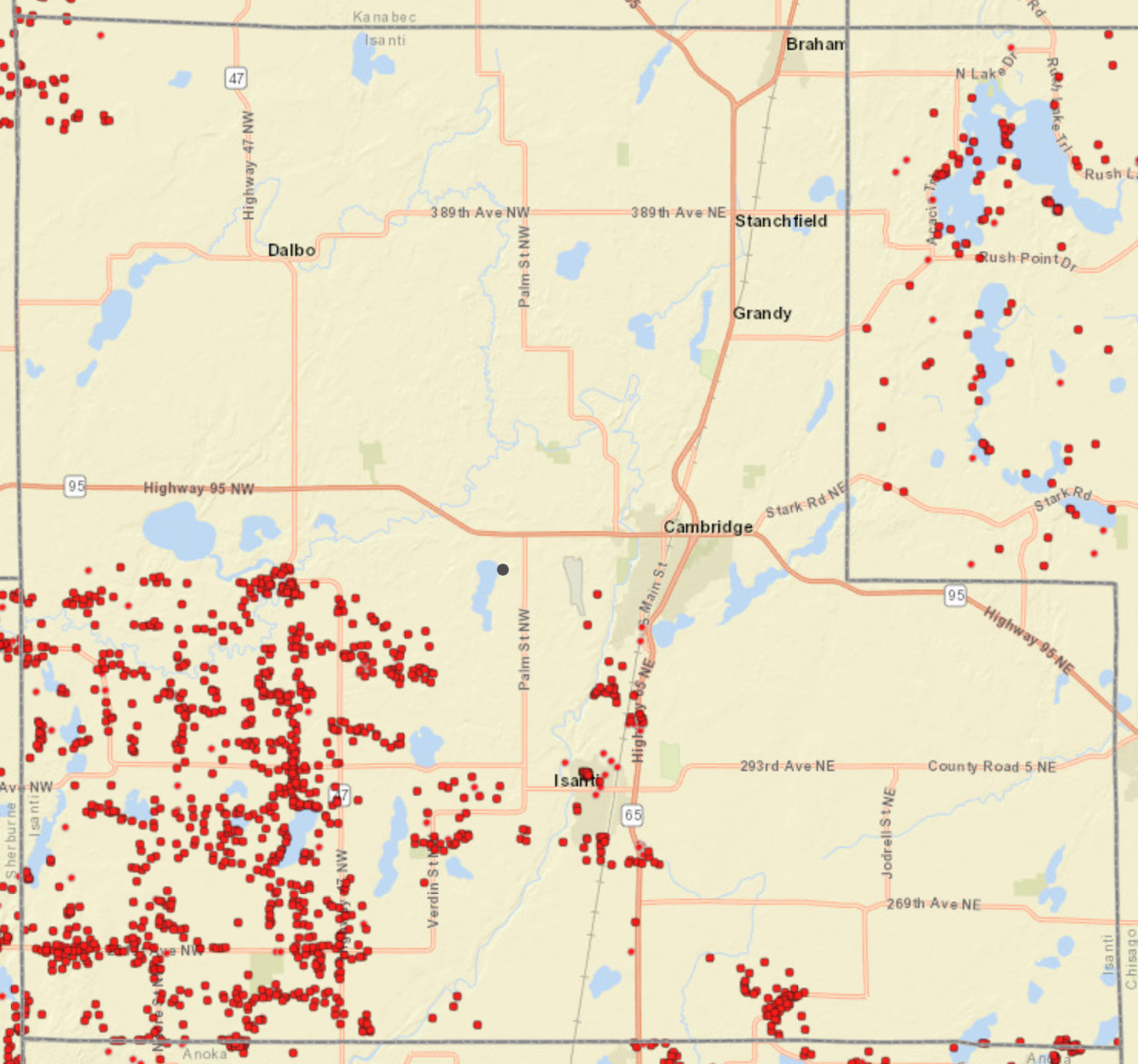- County: Isanti, Kanabec, Mille Lacs